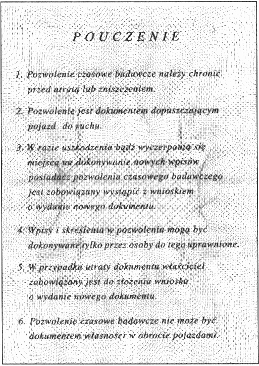 Z dniem 21 września 2002 r. nin. rozporządzenie utraciło moc, z wyjątkiem przepisów § 7 ust. 2 pkt 1 i załącznika nr 3 w zakresie wzoru pozwolenia czasowego badawczego i wzoru nalepki na tablice tymczasowe, zgodnie z § 45 rozporządzenia z dnia 22 lipca 2002 r. w sprawie rejestracji i oznaczania pojazdów (Dz.U.02.133.1123).
