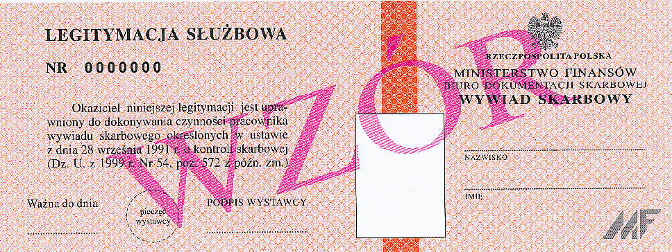 | Tytuł: | Określenie wzorów legitymacji pracowników jednostek organizacyjnych kontroli skarbowej oraz ustalenie zasad ich wydawania i wymiany. |