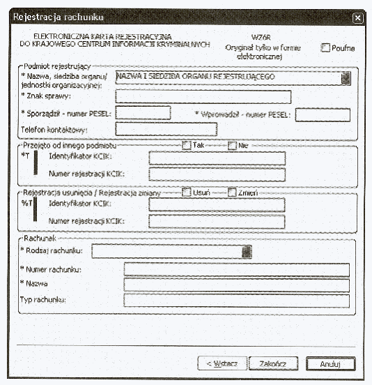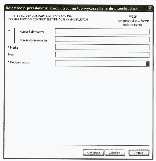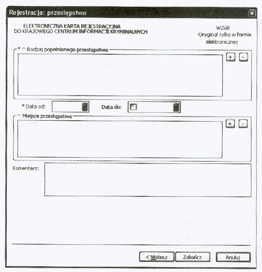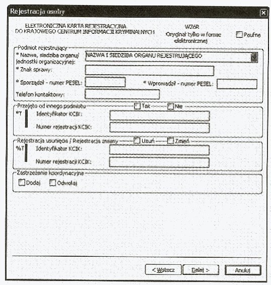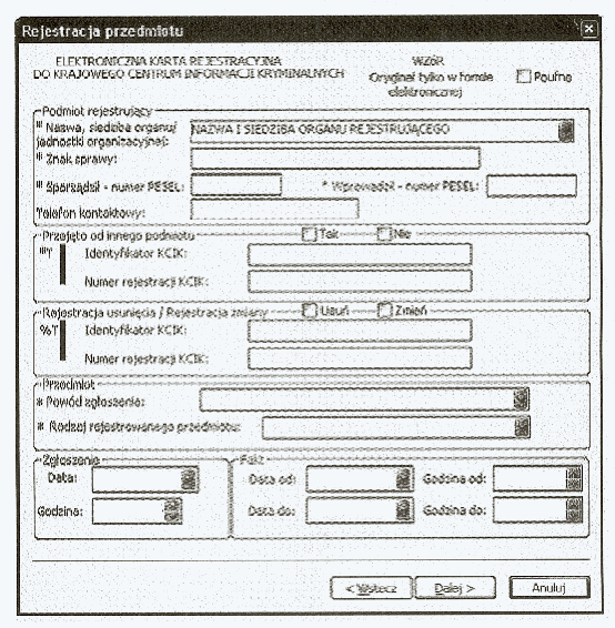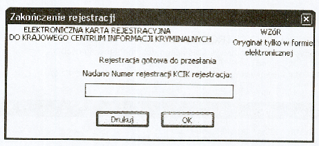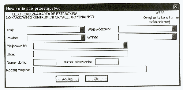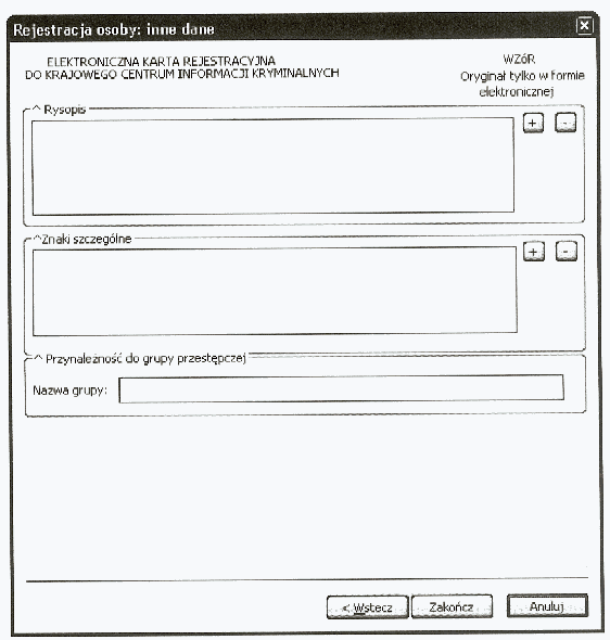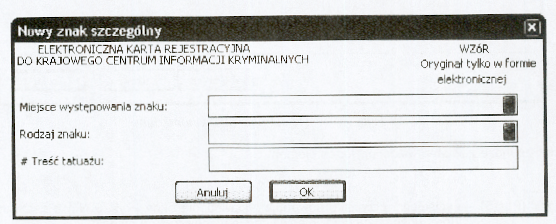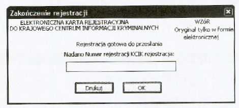 | Tytuł: | Wzór kart rejestracyjnych, sposób ich wypełniania oraz katalogi rodzajów przestępstw, cech rysopisowych i znaków szczególnych. |