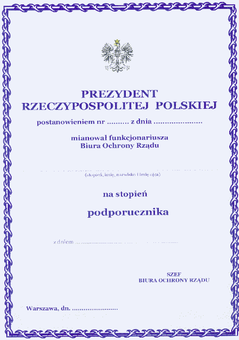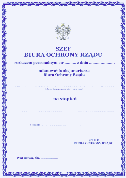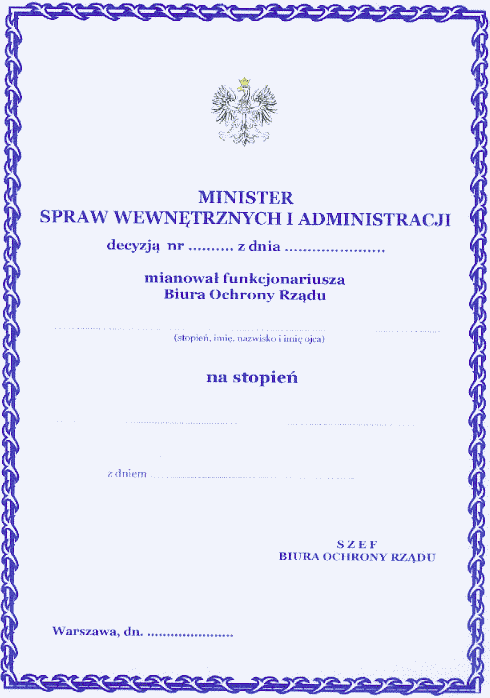| Tytuł: | Mianowanie na stopnie funkcjonariuszy Biura Ochrony Rządu. |