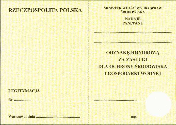 | Tytuł: | Ustanowienie odznaki honorowej "Za Zasługi dla Ochrony Środowiska i Gospodarki Wodnej", ustalenie jej wzoru, zasad i trybu nadawania oraz sposobu noszenia. |