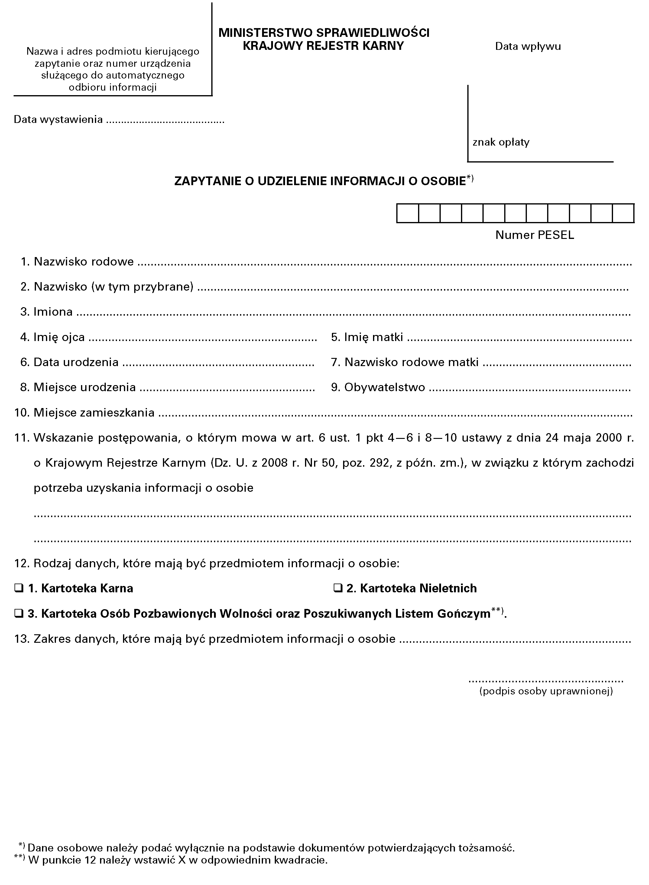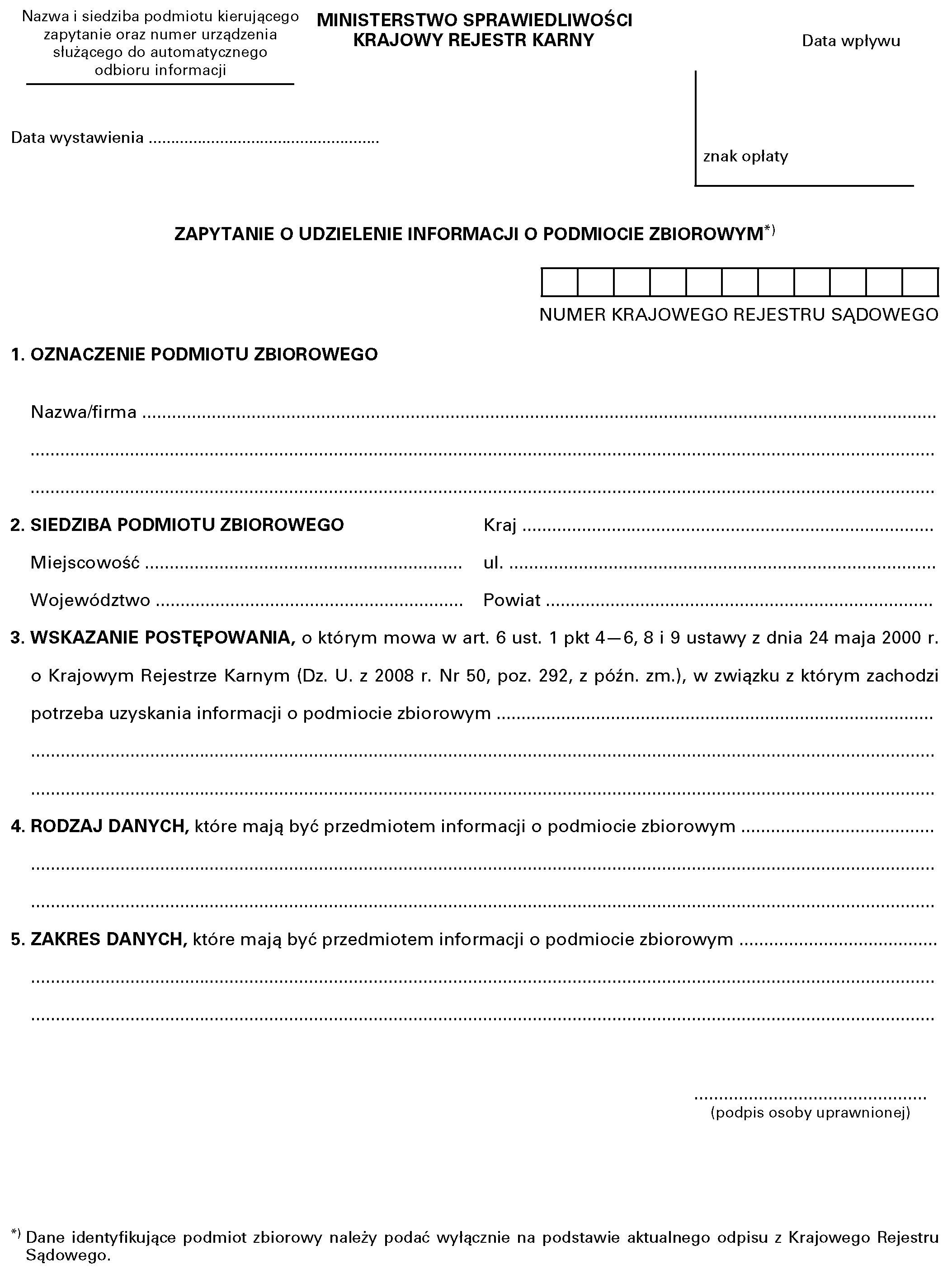 | Tytuł: | Udzielanie informacji o osobach oraz o podmiotach zbiorowych na podstawie danych zgromadzonych w Krajowym Rejestrze Karnym. |