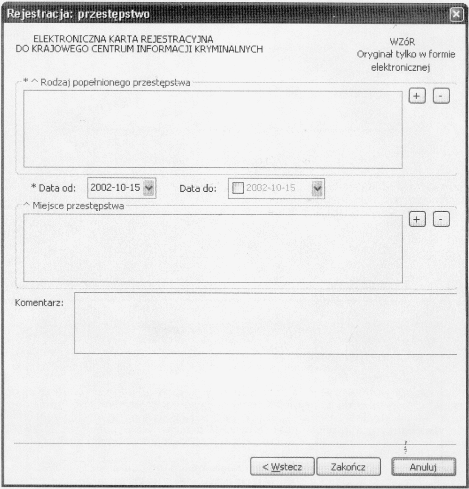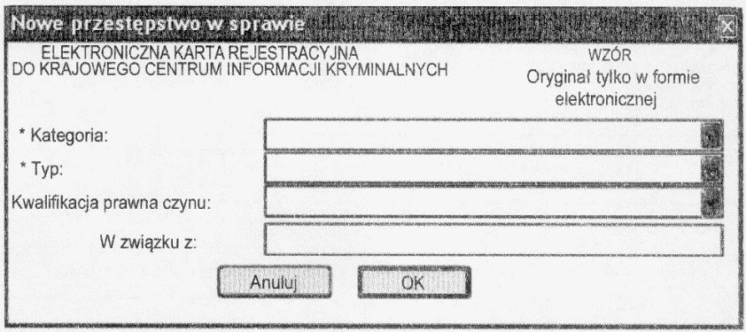 | Tytuł: | Zm.: rozporządzenie w sprawie wzorów kart rejestracyjnych, sposobu ich wypełniania oraz katalogów rodzajów przestępstw, cech rysopisowych i znaków szczególnych. |