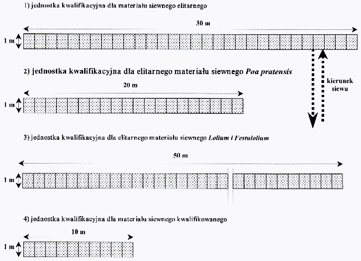 19. Dla metody oceny według norm powierzchni wyznacza się jednostki kwalifikacyjne o powierzchni zależnej od kategorii ocenianego materiału siewnego, a także od niektórych gatunków, według schematu: