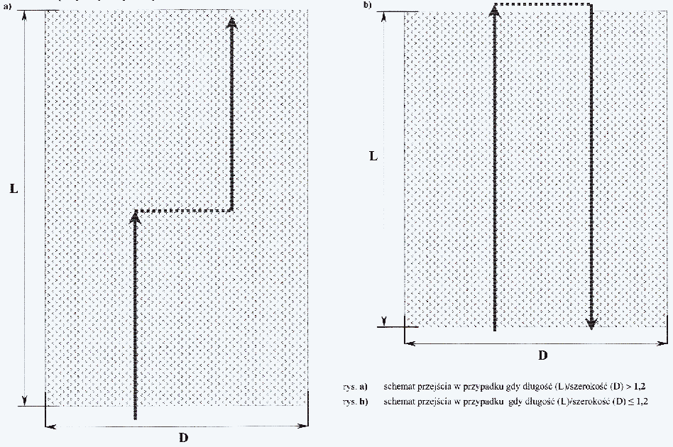 1) przed przystąpieniem do szczegółowej oceny, dokonuje się miarką pomiaru szerokości międzyrzędzi w centymetrach, z dala od uwroci i zasiewów, wykonując kilka pomiarów, według schematu: