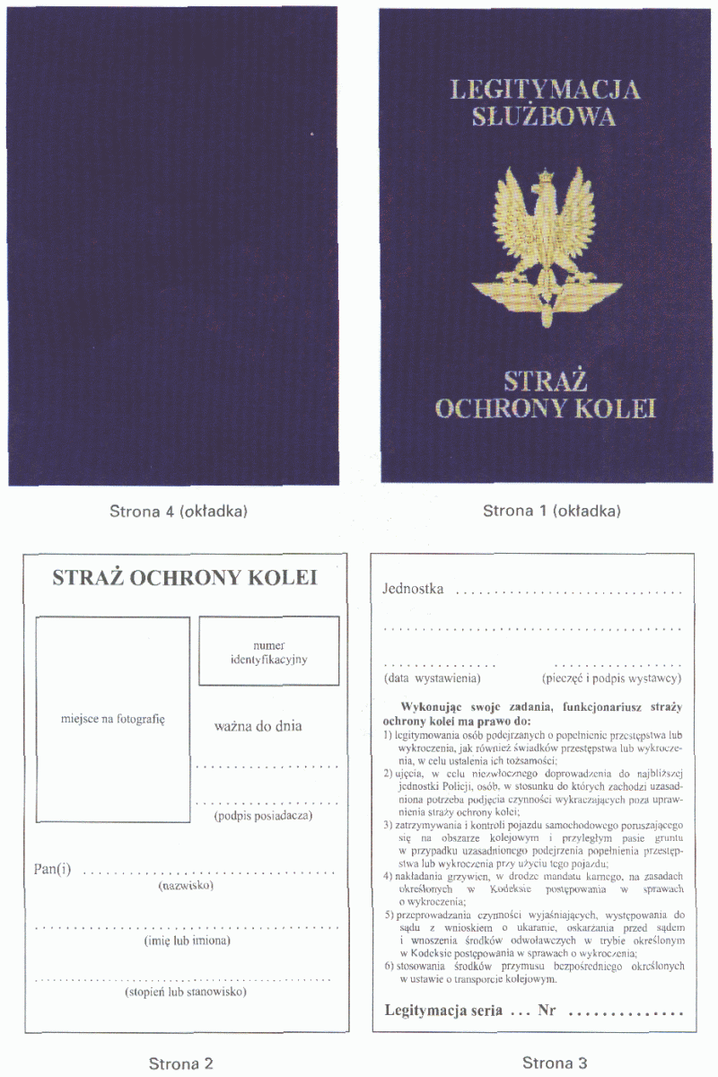 | Tytuł: | Określenie wzoru umundurowania, legitymacji, dystynkcji i znaków identyfikacyjnych funkcjonariuszy straży ochrony kolei oraz norm przydziału, warunków i sposobu ich noszenia. |