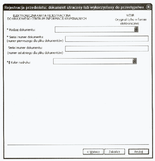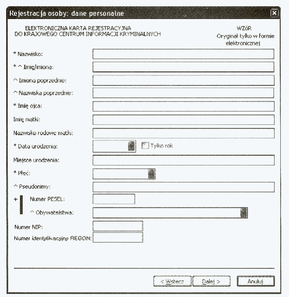 WZÓR GRAFICZNY ELEKTRONICZNEJ KARTY REJESTRACYJNEJ PRZESTĘPSTW