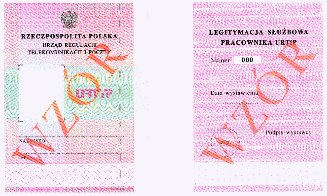 | Tytuł: | Wzór legitymacji służbowej pracownika Urzędu Regulacji Telekomunikacji i Poczty. |
