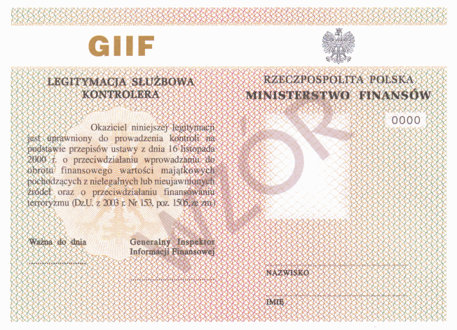 | Tytuł: | Zm.: rozporządzenie w sprawie określenia wzoru, zasad wydawania i wymiany legitymacji służbowej pracowników jednostki organizacyjnej podległej Generalnemu Inspektorowi Informacji Finansowej. |