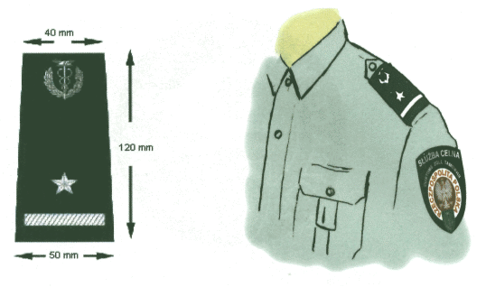 1) ubioru służbowego - haftem mechanicznym w kolorze srebrnym na nasuwkach na pagony w kolorze szarozielonym;