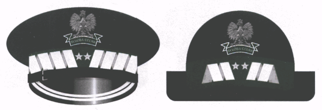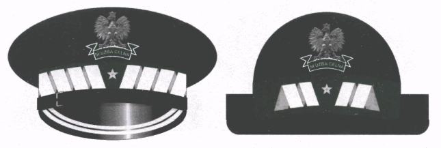3) młodszy dyspozytor celny, starszy rewident celny, rewident celny, młodszy rewident celny, aplikant celny - czapki bez płaskiego sznura.