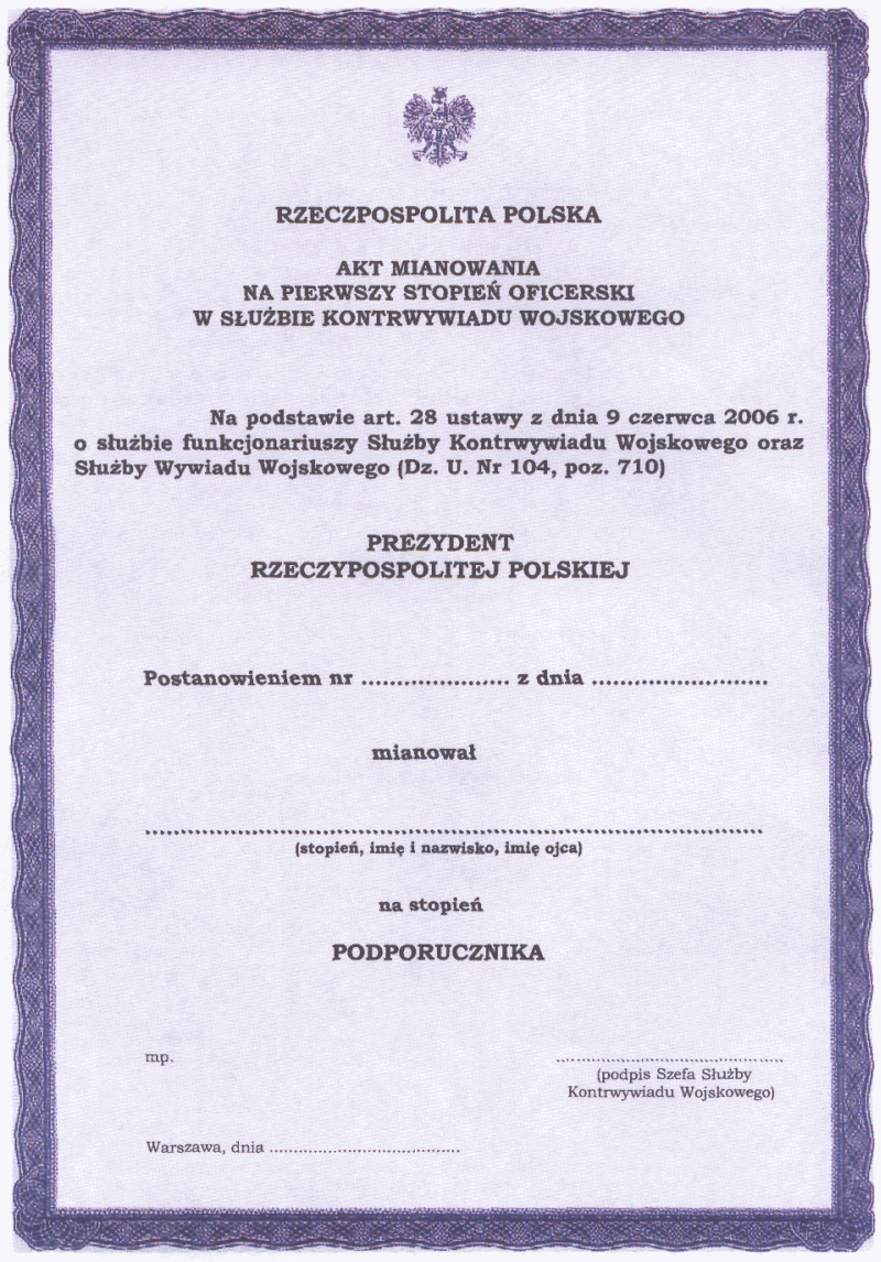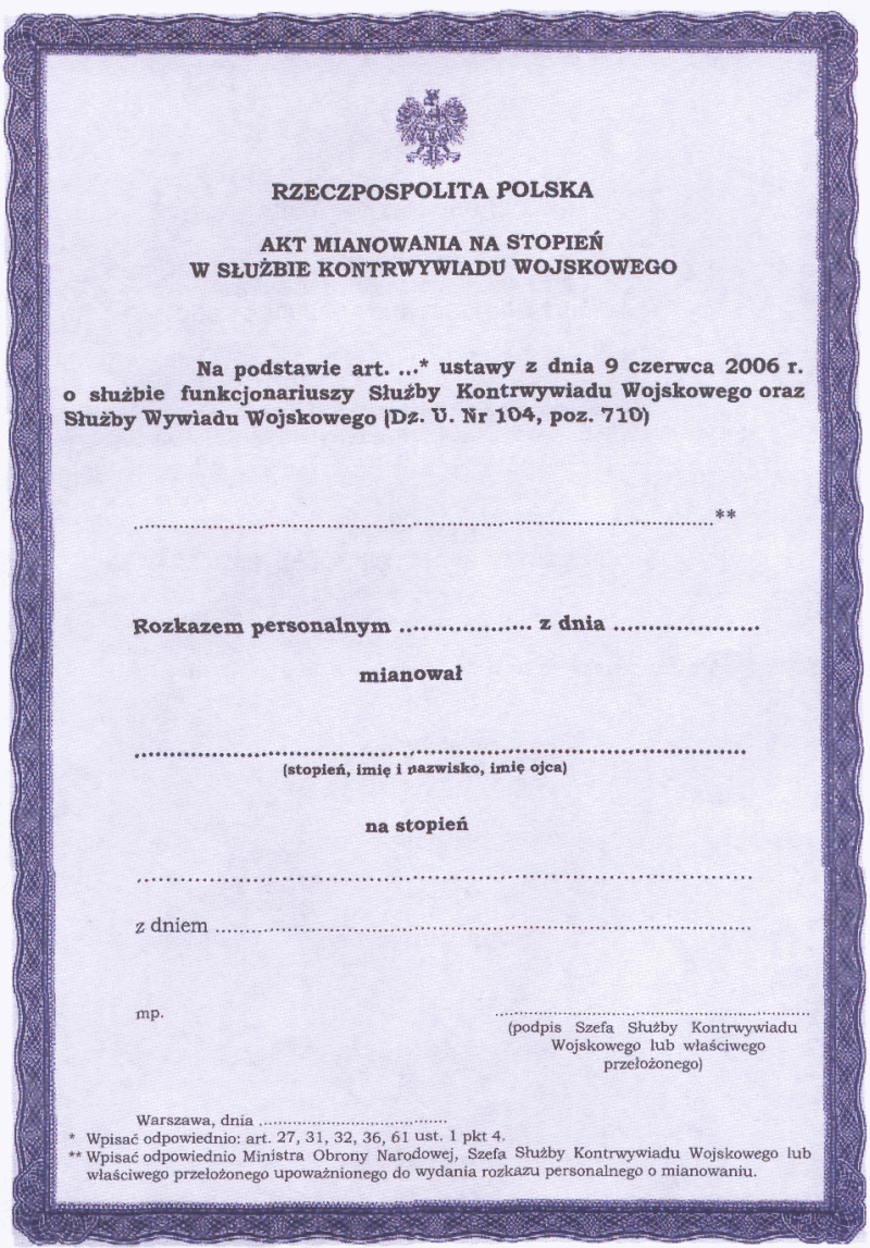 | Tytuł: | Mianowanie na stopnie służbowe funkcjonariuszy Służby Kontrwywiadu Wojskowego. |