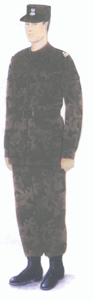 19b) spodnie letnie koloru granatowego z zielonymi lamówkami o szerokości około 2 mm wszywanymi w zewnętrzne szwy boczne nogawek spodni; spodnie nosi się w okresie letnim, nogawki spodni powinny sięgać do górnej krawędzi obcasa obuwia,