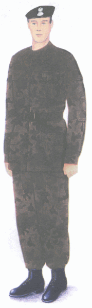 Ubiór polowy funkcjonariuszy noszących umundurowanie marynarki wojennej z mundurem polowym i beretem koloru czarnego