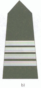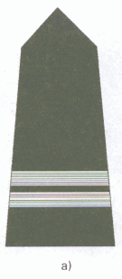 1) oznaki stopni haftowane bajorkiem w przypadku generała - do munduru galowego, munduru letniego, munduru wyjściowego, munduru wyjściowego ze spodniami do butów generała - bryczesami, bluzy olimpijki, płaszcza sukiennego, płaszcza letniego oraz do czapek garnizonowych (taśmy otokowe);