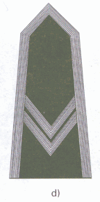 24) oznaki stopni do umundurowania wyjściowego marynarki wojennej - haftowane złotą nitką, wykonane metodą haftu komputerowego na tkaninie, z której szyte jest umundurowanie wyjściowe marynarki wojennej - do koszul z naramiennikami, swetra, bluzy olimpijki oraz kurtki; funkcjonariusz w stopniu admirała nosi oznaki stopni wykonane metodą haftu komputerowego do koszul z naramiennikami, swetra i kurtki, a do pozostałych odpowiednich przedmiotów umundurowania wyjściowego nosi oznaki stopni typu marynarki wojennej,",