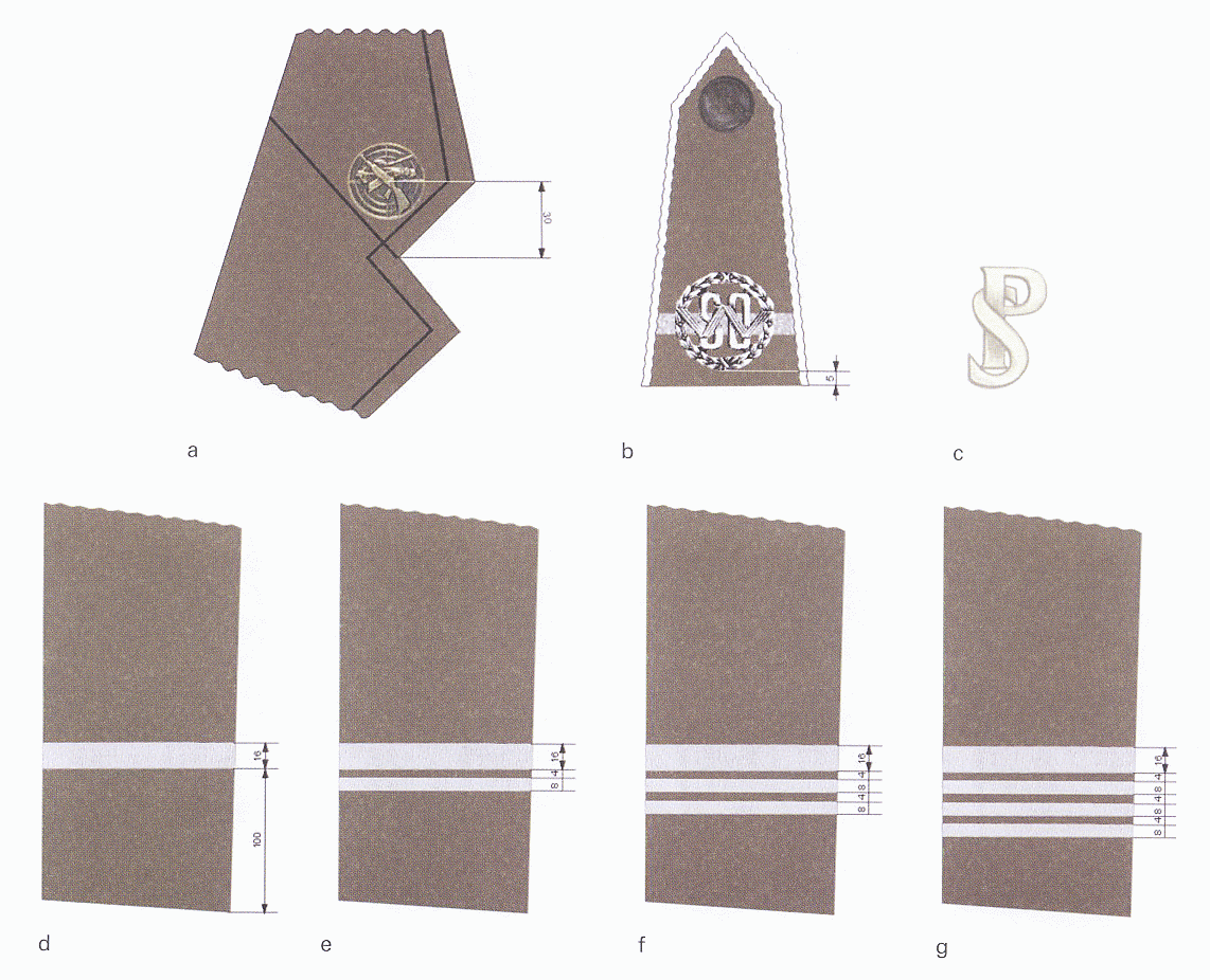 c) na naramiennikach płaszczy i kurtek mundurowych, bluz olimpijek i wiatrówek - wykonane z jednolitej taśmy o szerokości 5 mm,