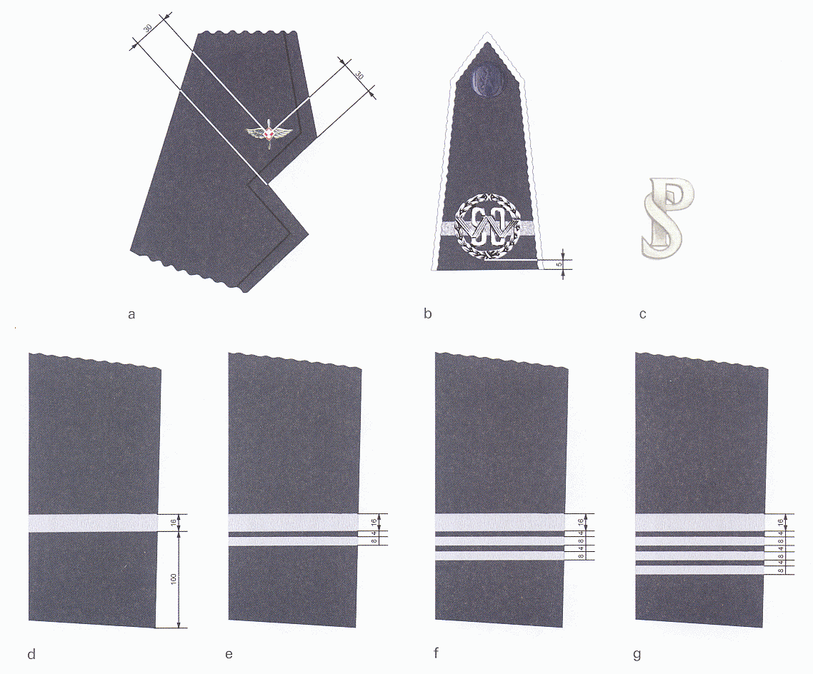 f) chorążowie na naramiennikach płaszczy, kurtek mundurowych, bluz olimpijek i wiatrówek - naramienniki obszyte wokół, z wyjątkiem miejsca wszycia rękawa, jednolitą taśmą szerokości 5 mm, bez kolorowych brzegów, a gwiazdki umieszczone wzdłuż linii prostej biegnącej przez środek naramiennika; gwiazdki i krokiewki wykonane bajorkiem;
