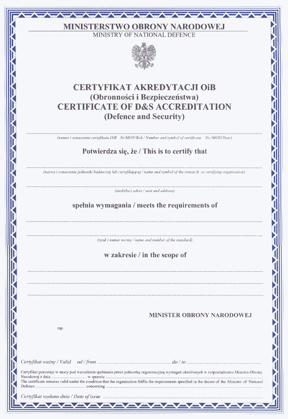 | Tytuł: | Wymagania dla jednostek organizacyjnych właściwych w zakresie oceny zgodności wyrobów przeznaczonych na potrzeby obronności państwa. |