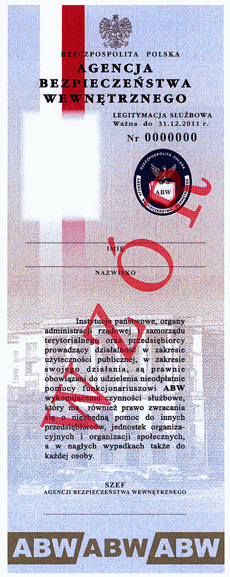 | Tytuł: | Zm.: rozporządzenie w sprawie wzoru legitymacji służbowej i innych dokumentów funkcjonariuszy Agencji Bezpieczeństwa Wewnętrznego. |