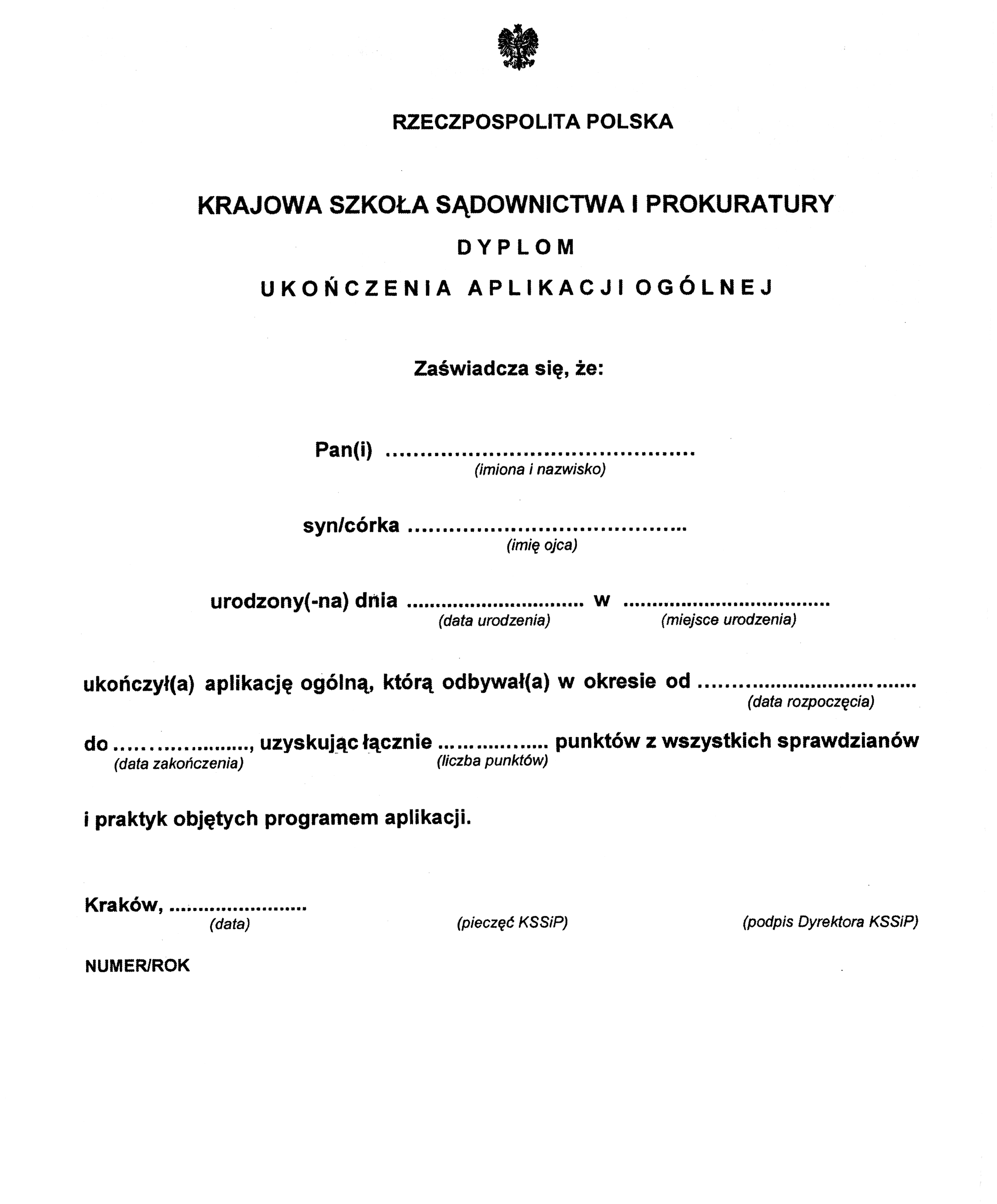 | Tytuł: | Odbywanie aplikacji ogólnej, sędziowskiej oraz prokuratorskiej. |