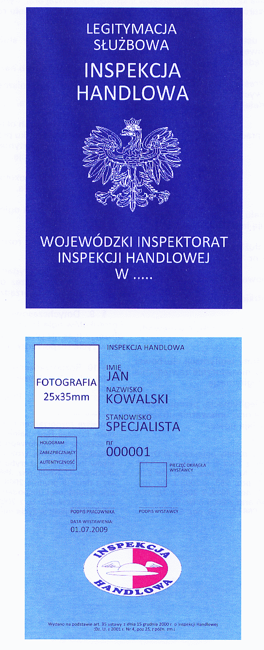 | Tytuł: | Wzór legitymacji służbowej pracowników Inspekcji Handlowej oraz tryb jej wydawania i wymiany, oraz wzory protokołu kontroli, protokołu oględzin i protokołu rozprawy. |