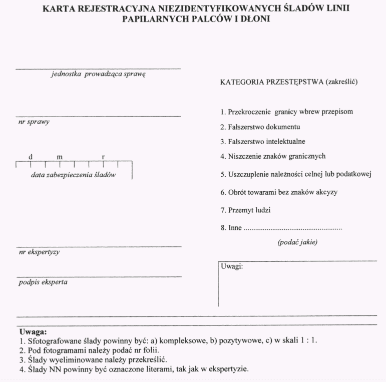 | Tytuł: | Gromadzenie przez Straż Graniczną odcisków linii papilarnych, zdjęć oraz danych osobowych, ich przechowywanie, wykorzystanie i przekazywanie innym organom oraz wzory wykorzystywanych dokumentów. |