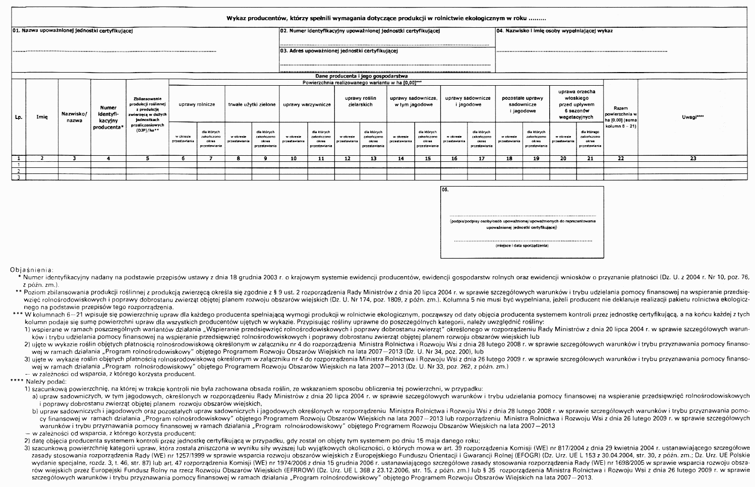 | Tytuł: | Zm.: rozporządzenie w sprawie wzoru formularza wykazu producentów, którzy spełnili wymagania dotyczące produkcji w rolnictwie ekologicznym, oraz sposobu jego przekazywania. |