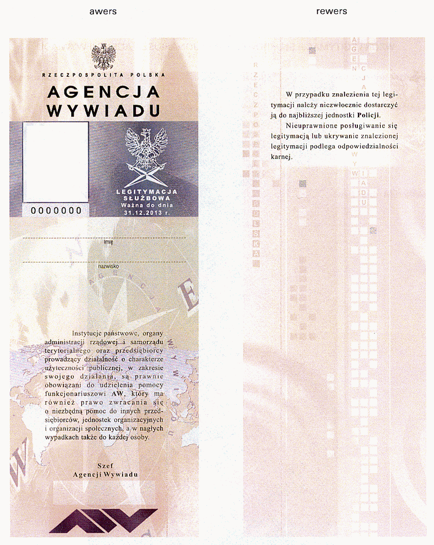 | Tytuł: | Zm.: rozporządzenie w sprawie wzoru legitymacji służbowej i innych dokumentów funkcjonariuszy Agencji Wywiadu. |