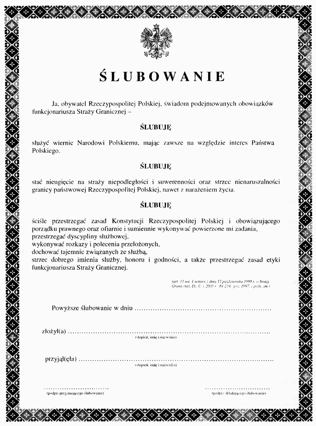 | Tytuł: | Zm.: rozporządzenie w sprawie ceremoniału składania ślubowania przez funkcjonariuszy Straży Granicznej. |