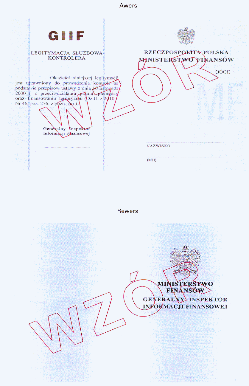 | Tytuł: | Wzór legitymacji służbowej pracowników jednostki organizacyjnej, przy pomocy której Generalny Inspektor Informacji Finansowej wykonuje swoje zadania. |