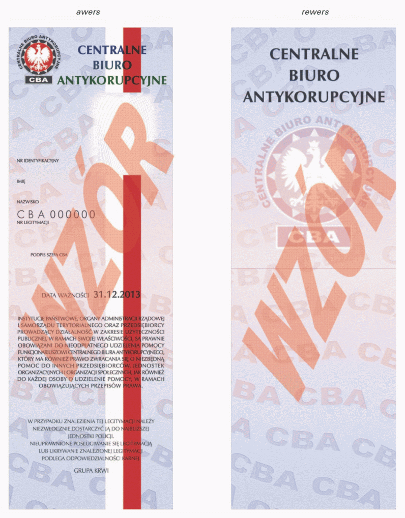 | Tytuł: | Legitymacja służbowa funkcjonariuszy Centralnego Biura Antykorupcyjnego. |