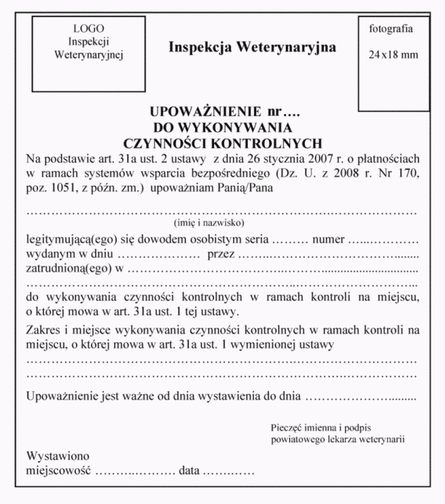 | Tytuł: | Zm.: rozporządzenie w sprawie wzoru imiennego upoważnienia do wykonywania czynności kontrolnych. |