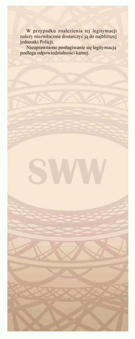 "W przypadku znalezienia tej legitymacji należy niezwłocznie dostarczyć ją do najbliższej jednostki Policji.