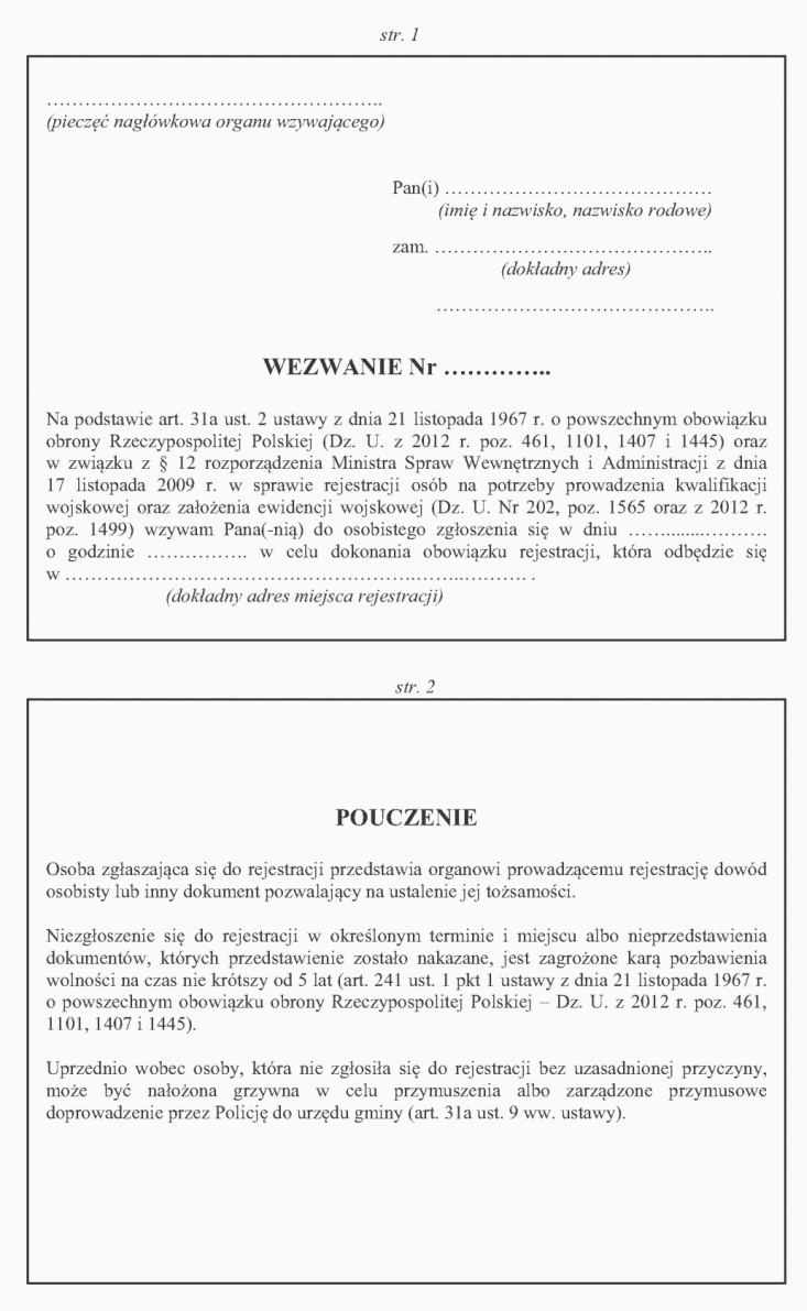 | Tytuł: | Zm.: rozporządzenie w sprawie rejestracji osób na potrzeby prowadzenia kwalifikacji wojskowej oraz założenia ewidencji wojskowej. |