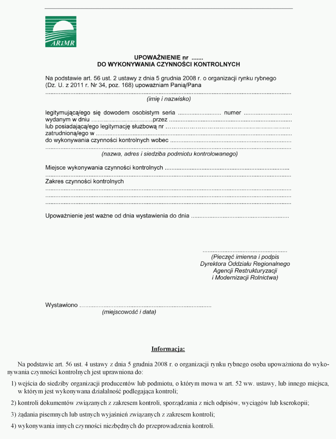 | Tytuł: | Warunki, jakie powinny spełniać jednostki organizacyjne, którym można powierzyć przeprowadzanie kontroli związanych z przyznawaniem pomocy finansowej organizacjom producentów, wzór upoważnienia do wykonywania czynności kontrolnych oraz sposób sporządzenia i wzór protokołu z kontroli. |