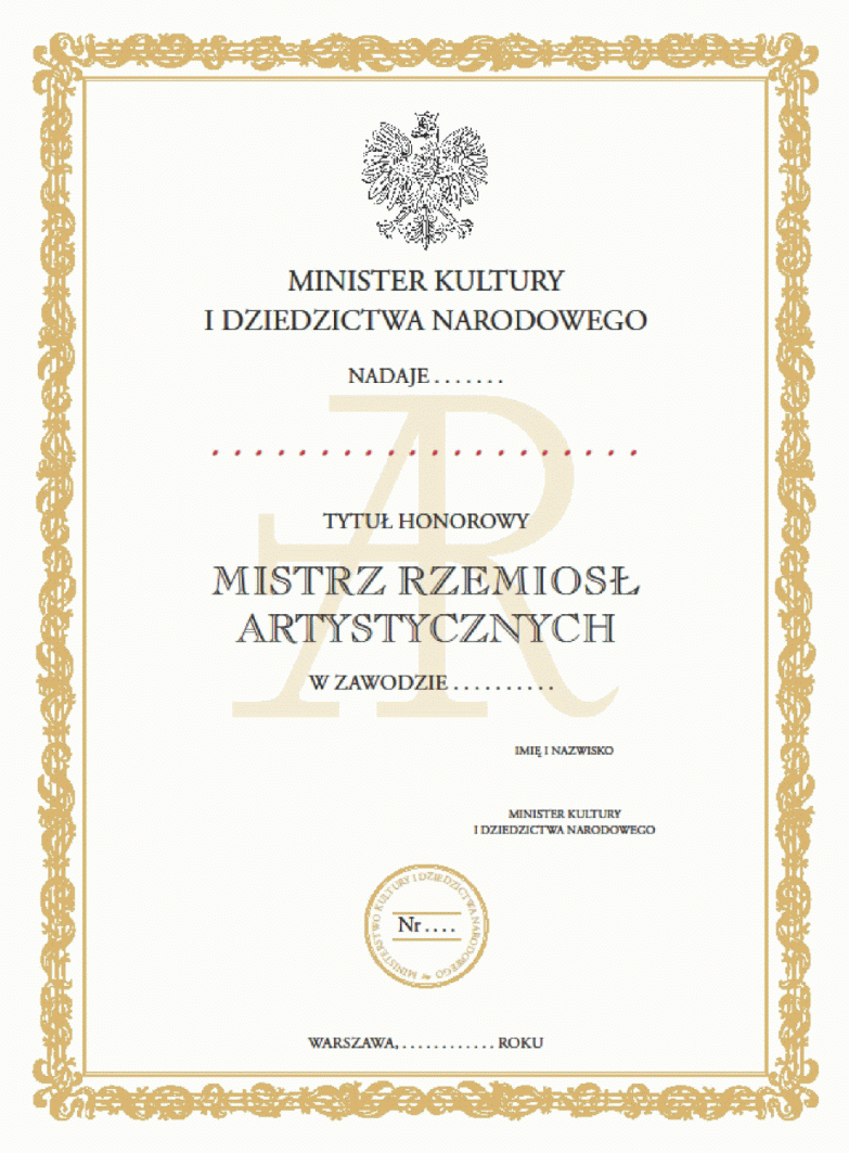 | Tytuł: | Nadawanie tytułu honorowego "Mistrz Rzemiosł Artystycznych". |
