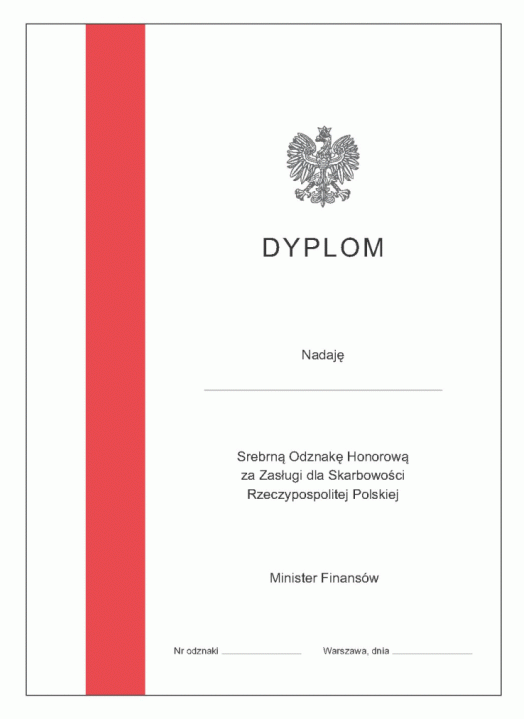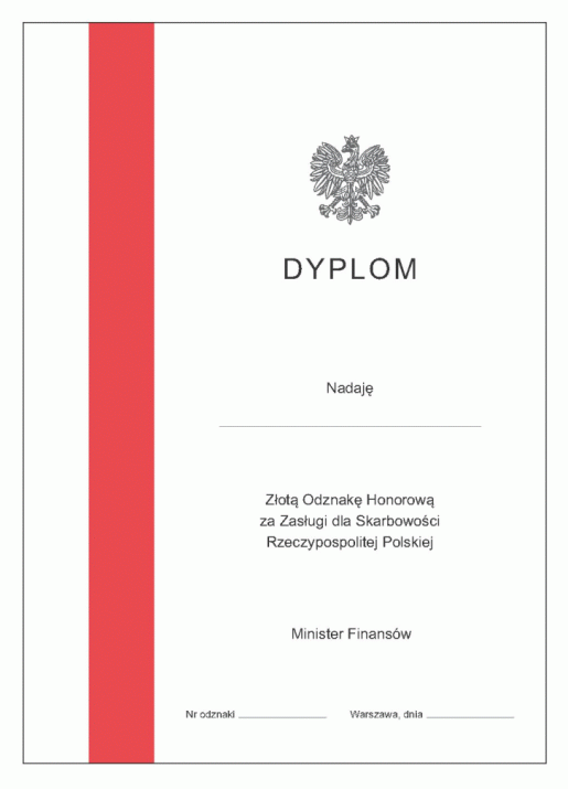 | Tytuł: | Ustanowienie Odznaki Honorowej za Zasługi dla Skarbowości Rzeczypospolitej Polskiej, ustalenie jej wzoru oraz zasady i tryb nadawania, a także sposób noszenia. |