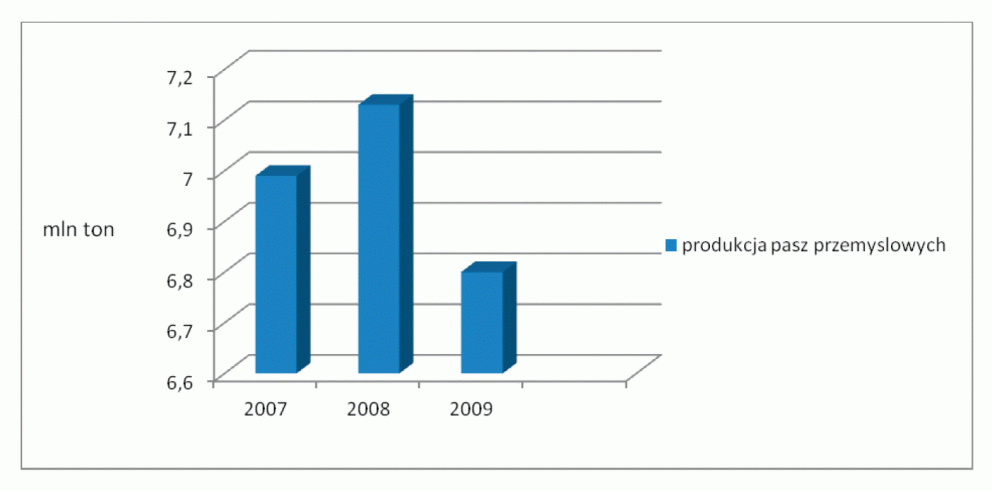 Rys. 4. Wielkość produkcji pasz przemysłowych w Polsce w latach 2007-2009 (Źródło: GUS,
