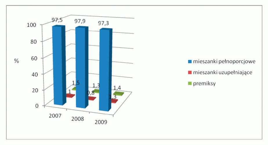 Rys. 5. Struktura produkcji pasz przemysłowych dla drobiu w latach 2007-2009 (w %)