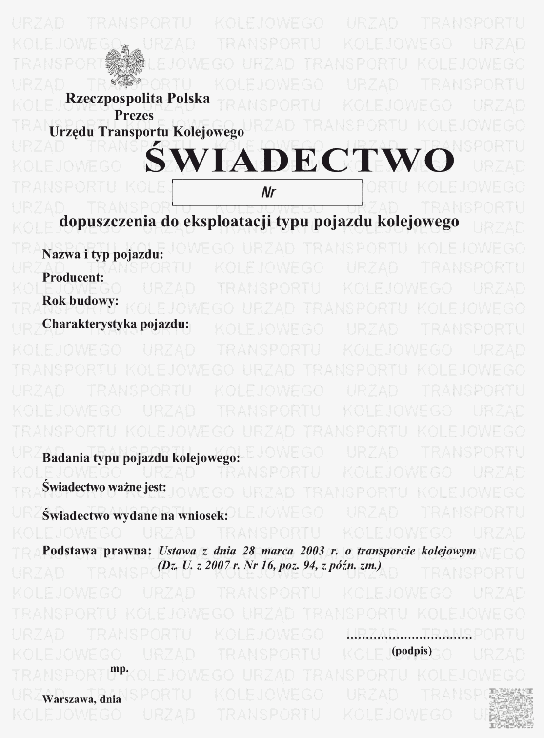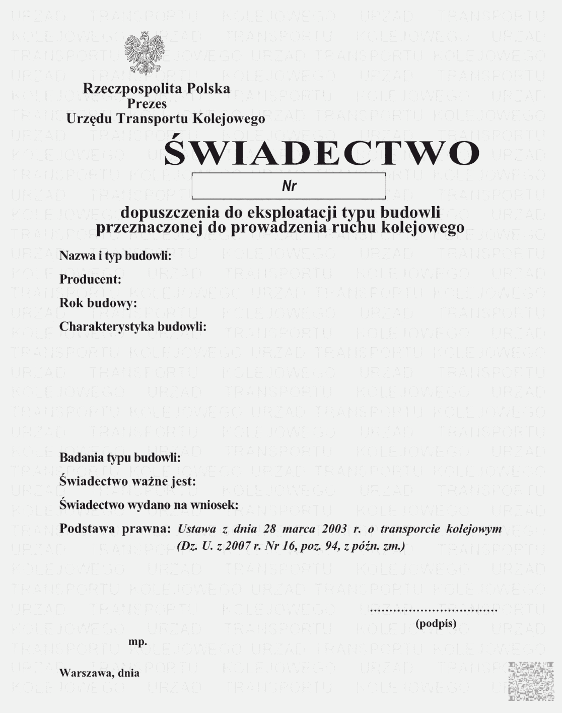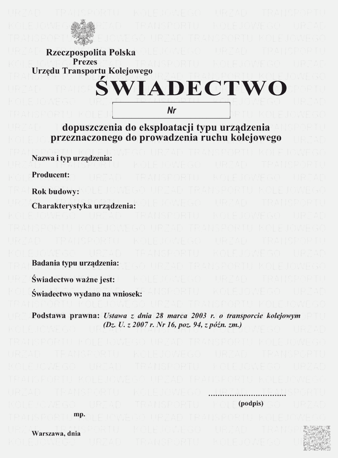 | Tytuł: | Świadectwa dopuszczenia do eksploatacji typu. |