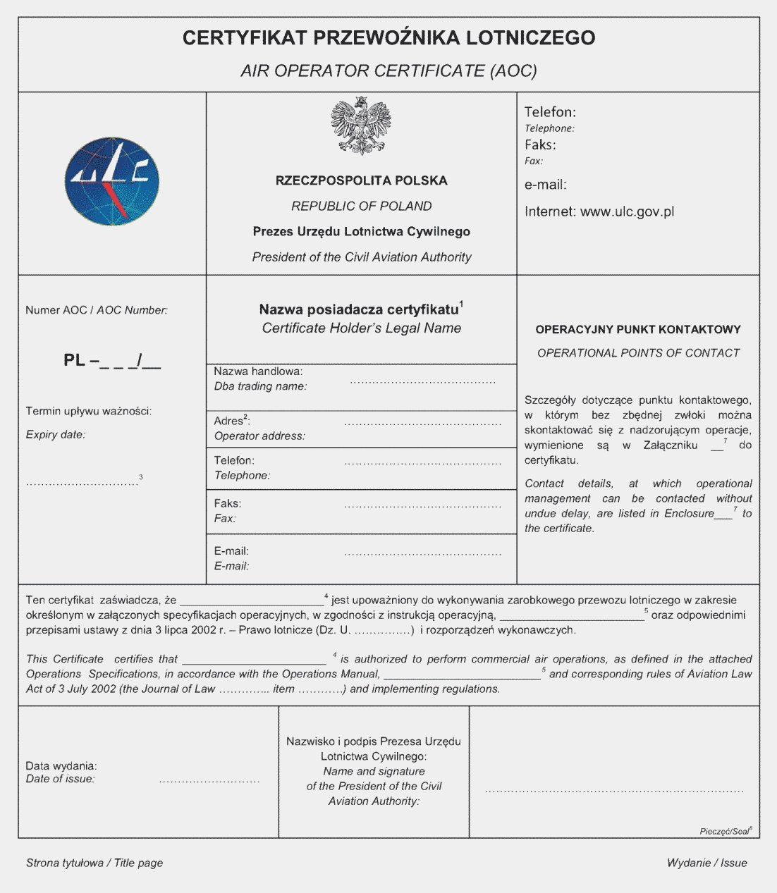 CERTYFIKAT PRZEWOŹNIKA LOTNICZEGO