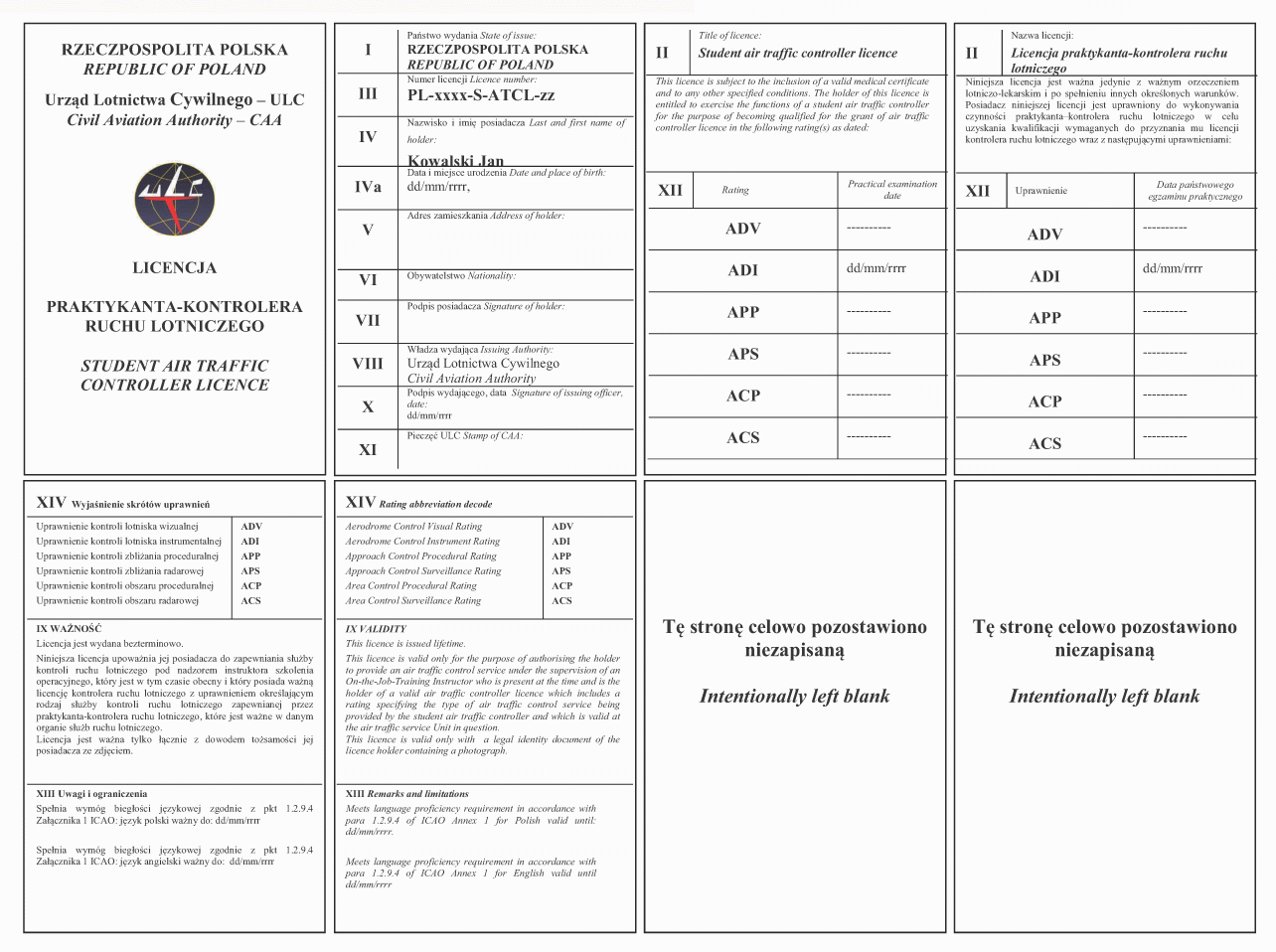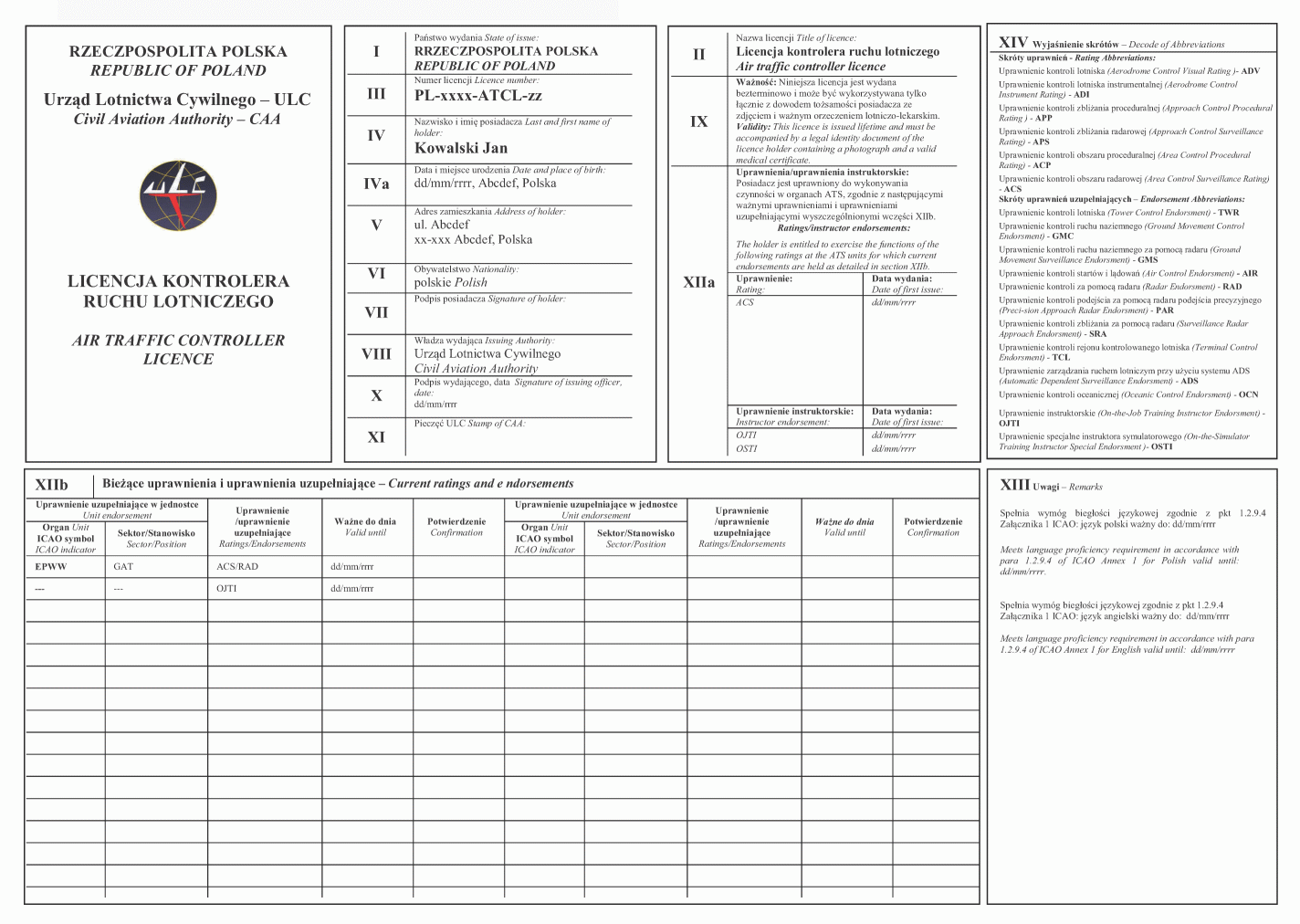 2. Wzór licencji kontrolera ruchu lotniczego