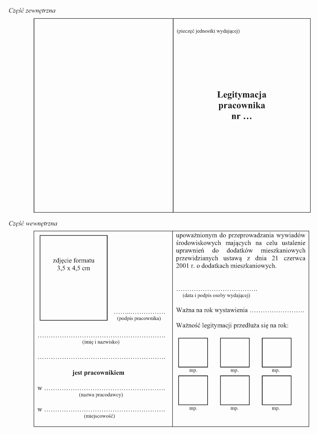 | Tytuł: | Sposób przeprowadzania wywiadu środowiskowego, wzór kwestionariusza wywiadu oraz oświadczenia o stanie majątkowym wnioskodawcy i innych członków gospodarstwa domowego, a także wzór legitymacji pracownika upoważnionego do przeprowadzenia wywiadu. |