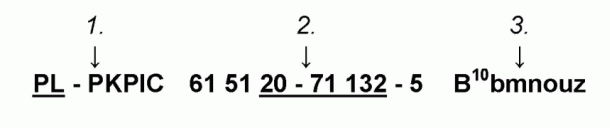 Rys. 6. Wzór identyfikatora pojazdu kolejowego (1. Kod interoperacyjności wagonu towarowego; 2. Identyfikator cyfrowy i identyfikator literowy państwa rejestracji pojazdu kolejowego oraz identyfikator literowy dysponenta; 3. Kod cyfrowy kategorii wagonu towarowego i parametrów techniczno-eksploatacyjnych wagonu oraz jego numer seryjny wraz z oznaczeniem literowym charakterystyki technicznej wagonu) nanoszonego: