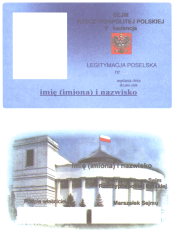 | Tytuł: | Określenie wzoru legitymacji poselskiej w V kadencji Sejmu. |