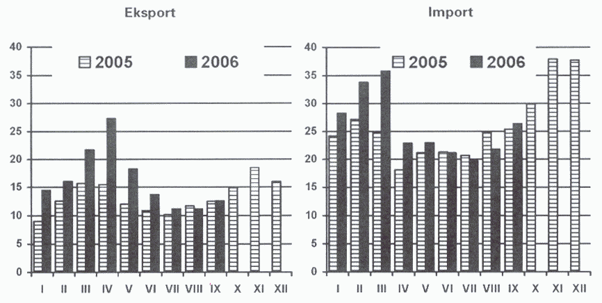 Wykres 1. Zmiana ilości i tonażu jednostek w poszczególnych segmentach pomiędzy rokiem 2004 i 2007