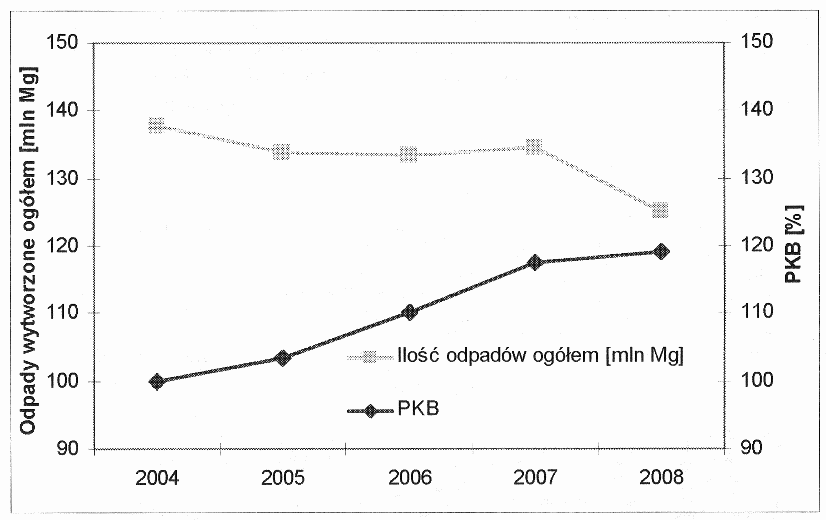 Rozdzielenie wzrostu gospodarczego od ilości wytwarzanych odpadów, rozumiane jako dążenie, przy wzroście gospodarczym, do stałego ograniczenia ilości wytwarzanych odpadów: