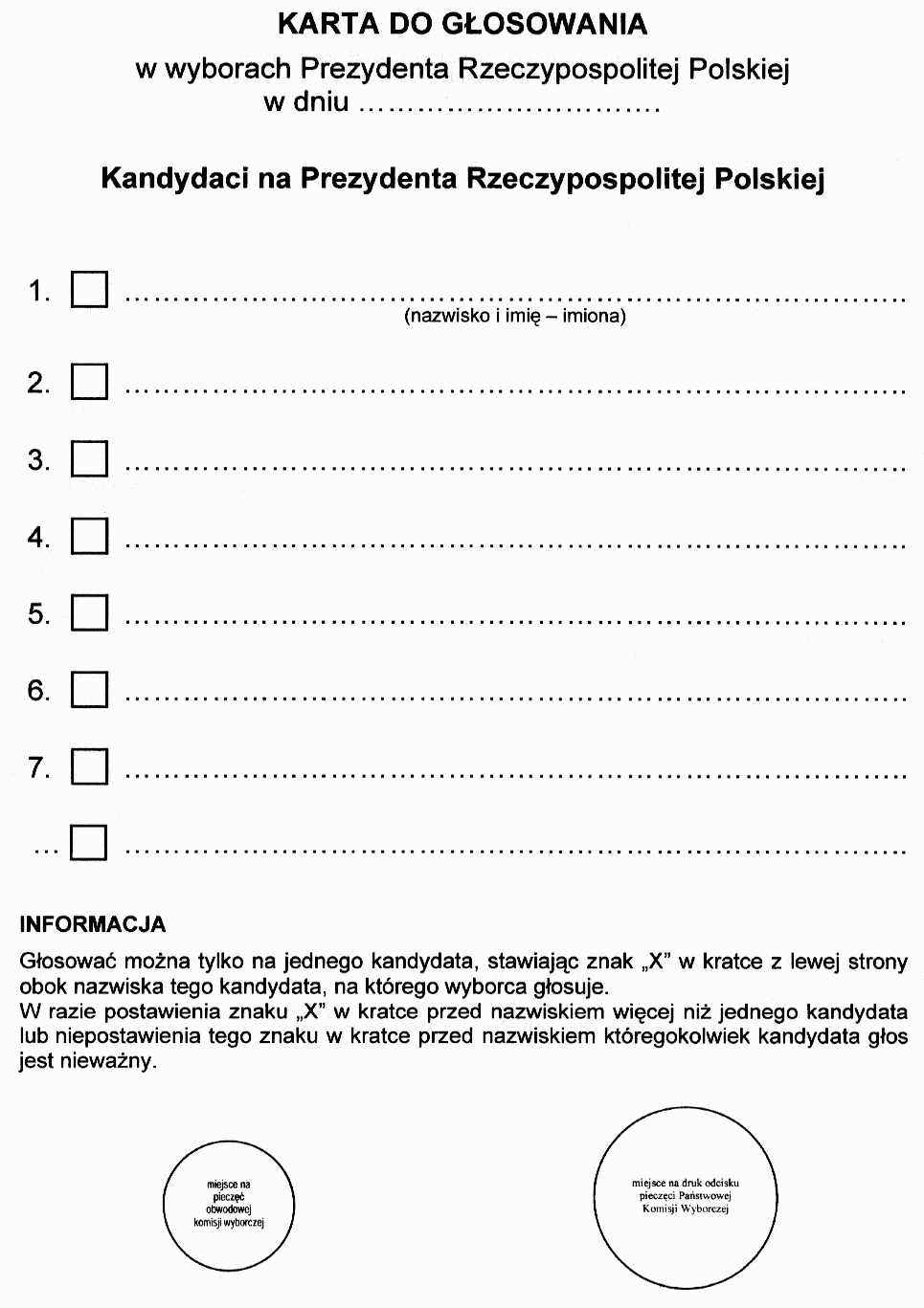 | Tytuł: | Wzór karty do głosowania w wyborach Prezydenta Rzeczypospolitej Polskiej. |
