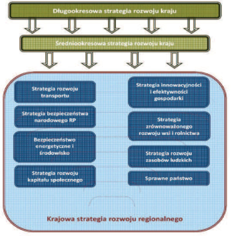 Prace nad przedstawianą KSRR wpisują się, w ramach zmiany systemu zarządzania rozwojem Polski, w porządkowanie dokumentów strategicznych przyjmowanych przez RM16. KSRR stanowi jedną z dziewięciu strategii rozwoju17, które będą realizować średnio i długookresową strategię rozwoju kraju. Strategie te, jako podstawowe instrumenty realizacji średniookresowej strategii rozwoju kraju będą podlegały ocenie zgodności z tym dokumentem.